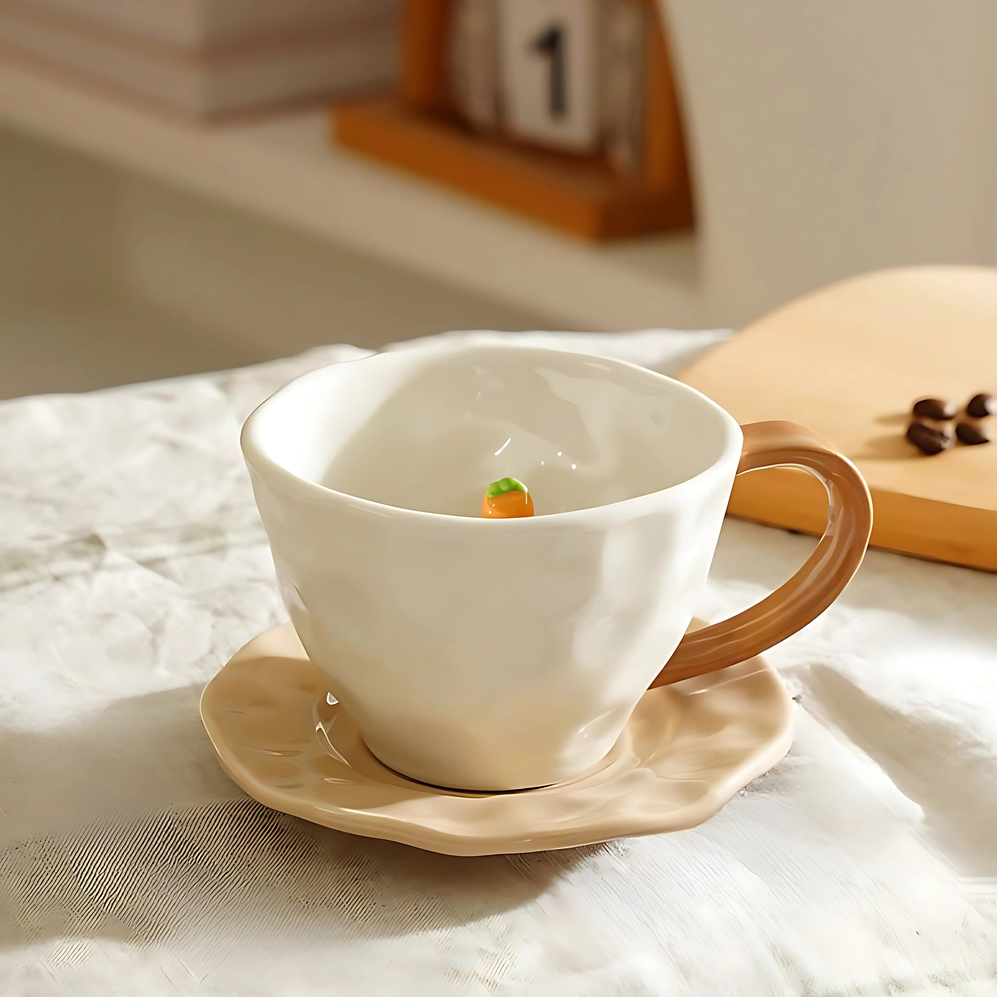 ✔ Warm Aesthetic – The light brown handle and matching saucer bring a natural, earthy touch.