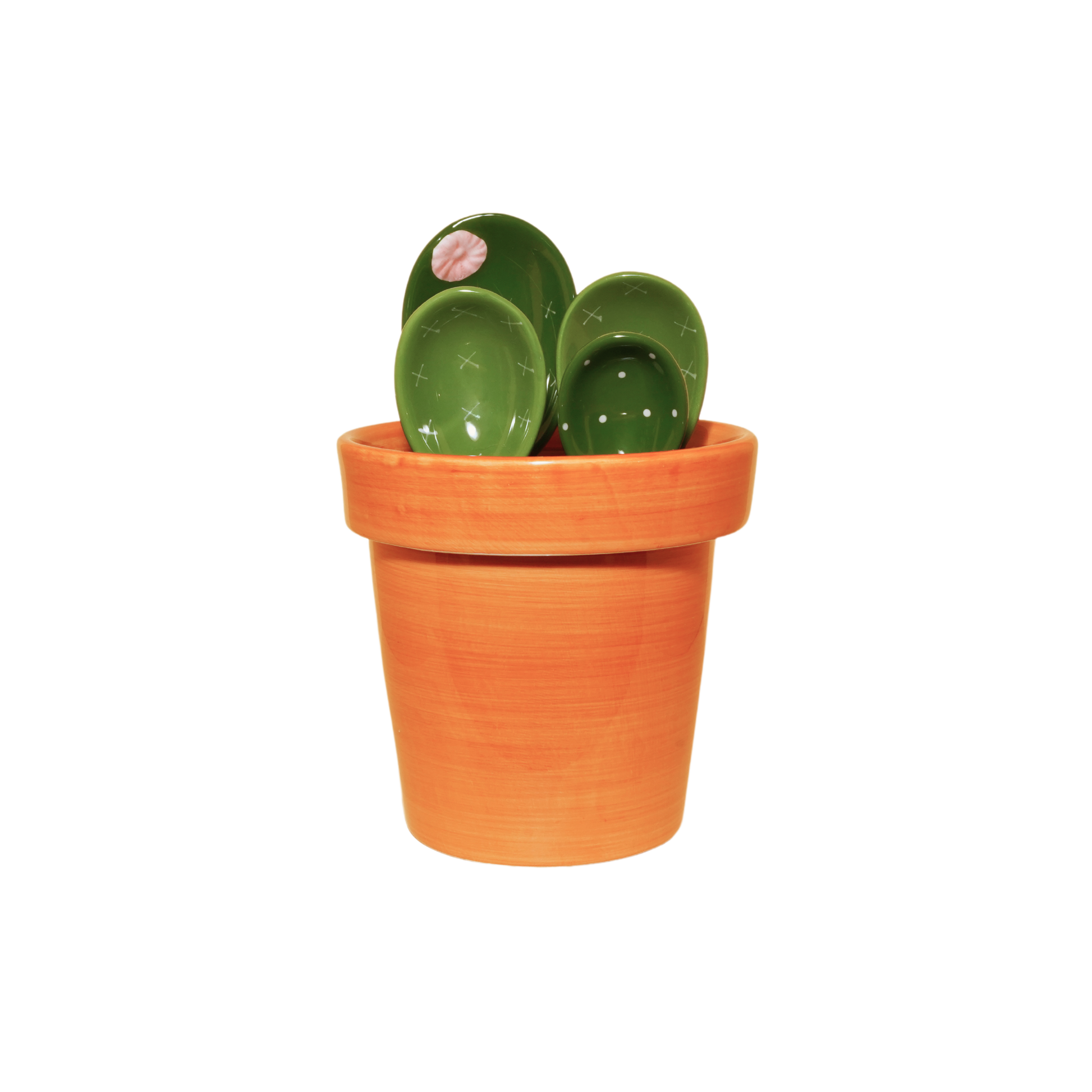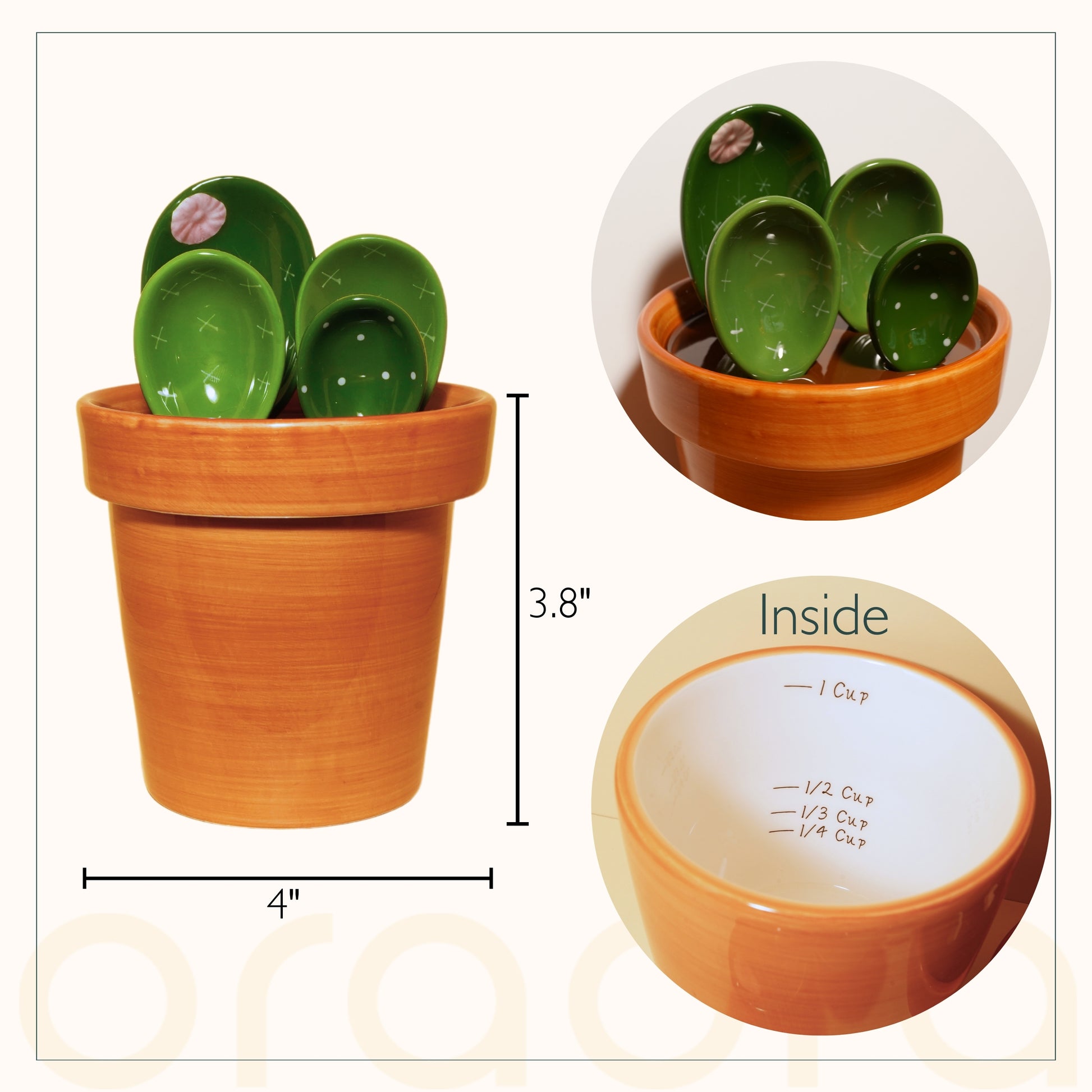 Designed in a fun cactus flower pot shape, this ceramic measuring set brings a playful charm to your kitchen. The spoons feature delicate thorn and flower details, while the matching cup has a stylish wave-patterned bottom. Aesthetic, practical, and perfect for any cooking or baking enthusiast!