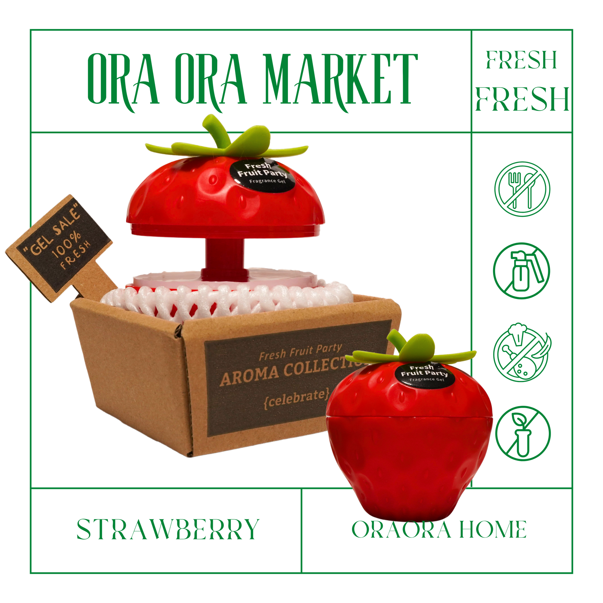 Bring a playful touch to your space with our Strawberry-shaped air freshener — so realistic it looks like a fresh fruit straight from the market! Packaged like produce and made with a solid scented core, it’s both decorative and functional — perfect for your car, bathroom, office, closet, or as a small home decor accent.