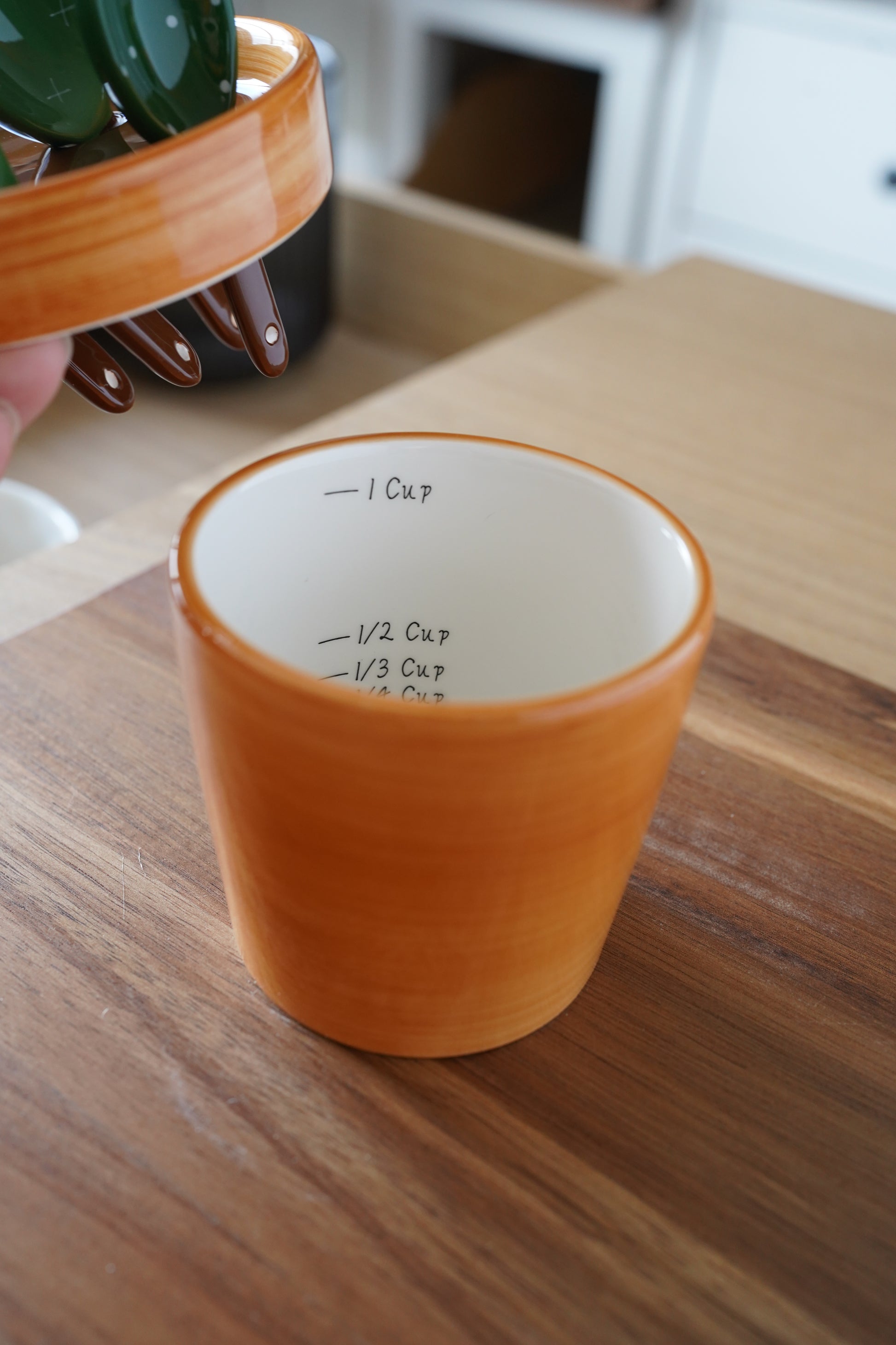✅ WHAT’S INCLUDED – 4 ceramic measuring spoons (1/4 tsp, 1/2 tsp, 1 tsp, 1 Tbsp) + 1 ceramic measuring cup (290ml).